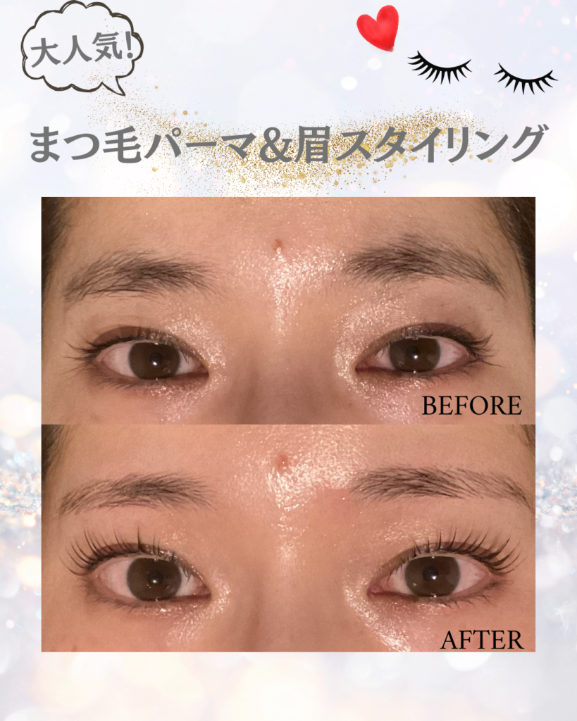 本日は大人気のまつげパーマと眉毛スタイリングのビフォーアフターをご紹介いたします😊✨