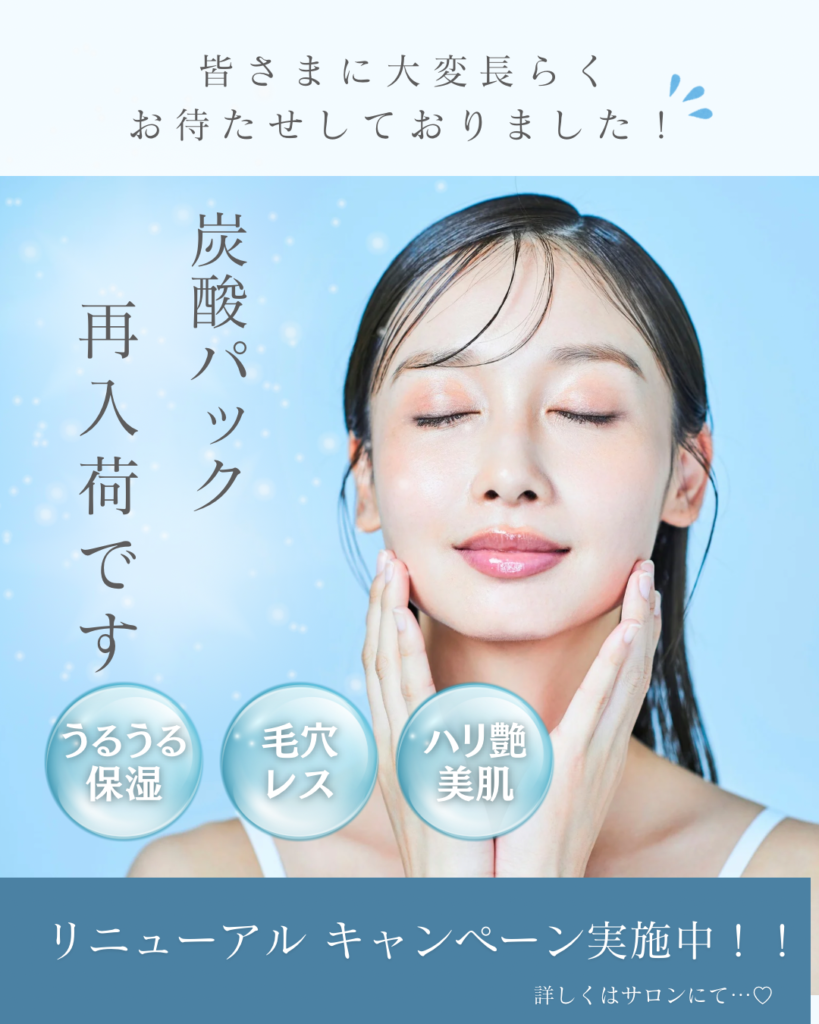 #臼杵エステ#フェイシャルエステ#肌改善#炭酸パック#リニューアル#うるうる保湿#毛穴レス#ハリ艶#美肌#抗酸化作用#シワ予防#シミ予防#ハリ肌#弾力アップ#高保湿#コラーゲン生成#美白ケア