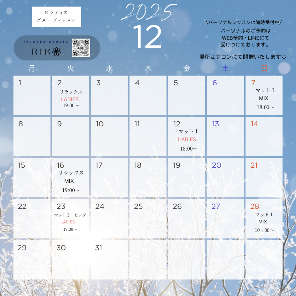 12月のピラティススケジュール⭐️