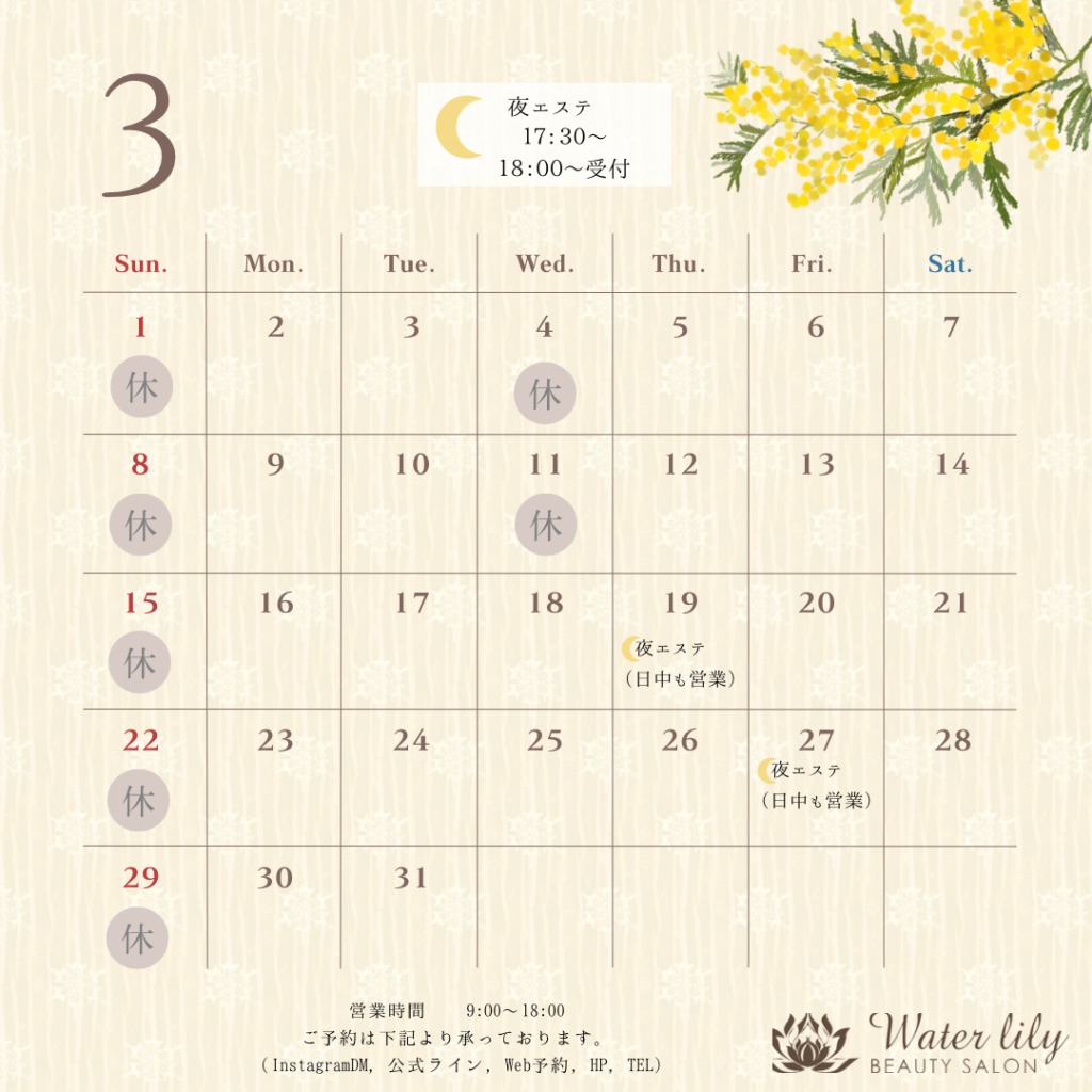 こんにちは🫧Water lilyです☺️ 3月のスケジュールを配信いたします🌸